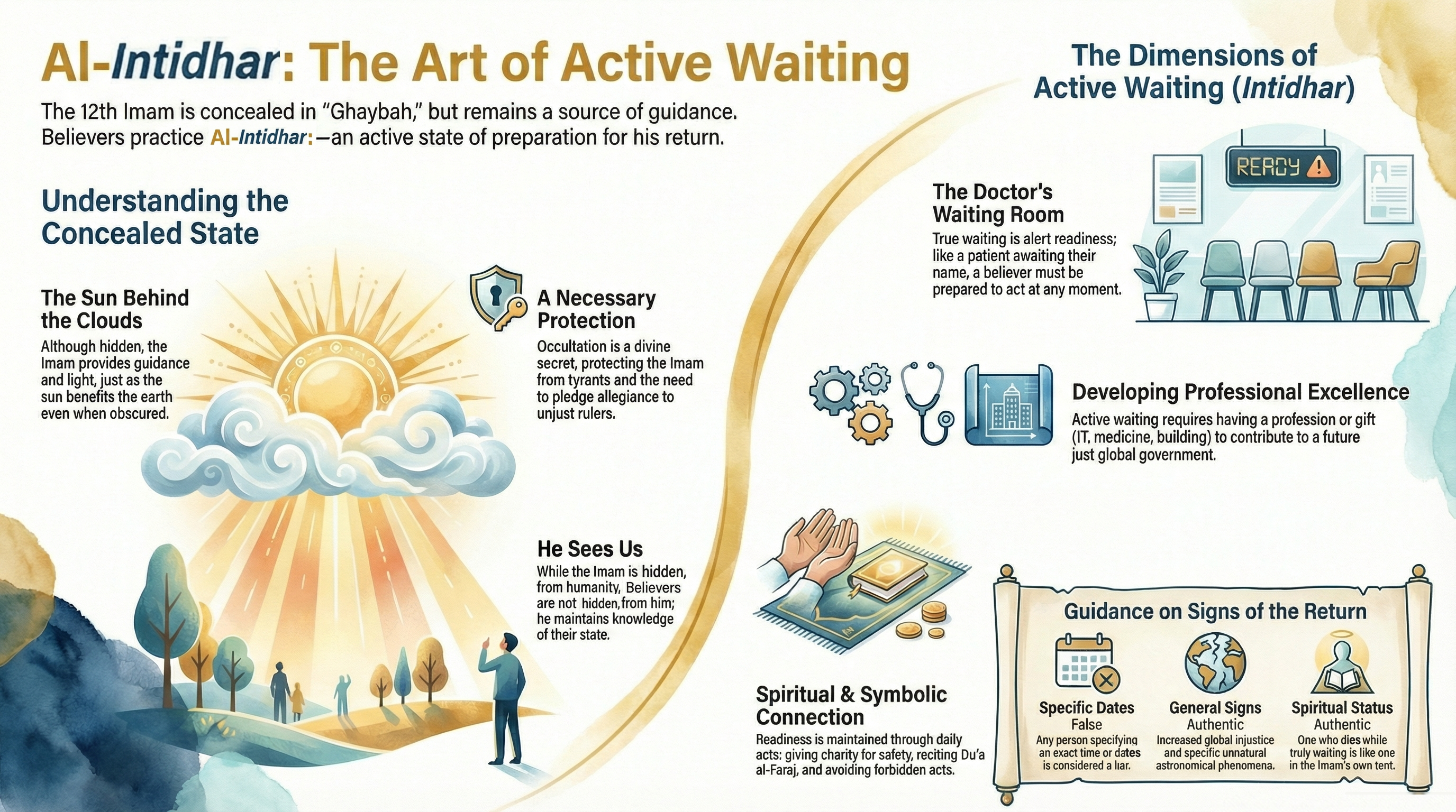 Learn about Al-Intidhar, the role of a true Muntadhir, and how to prepare for Imam al-Mahdi (AS). Homework: Do not forget to complete pages 378, 382, and 383 from Book 7.